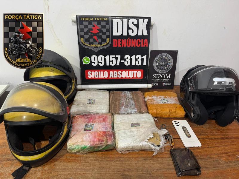 Ainda no sábado, 25, equipes do Tático Comando e do Tático Moto interceptaram um motociclista na Rodovia Josmar Chaves Pinto, após acompanhamento tático e cerco policial. Durante a abordagem, os militares encontraram aproximadamente 5 quilos de substância supostamente entorpecente. Após o flagrante, as equipes fizeram diligências em Santana para tentar identificar outros envolvidos na distribuição do material. O suspeito e a droga foram apresentados no Ciosp do Pacoval.