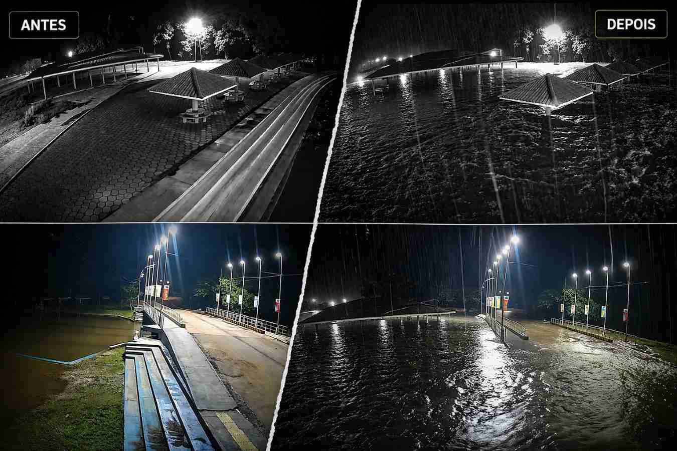 Fortes chuvas registradas esta semana provocaram alagamentos em áreas urbanas de Pedra Branca do Amapari, a 187 km de Macapá, e deixaram famílias desalojadas e desabrigadas. O problema foi causado pela elevação repentina do igarapé do Bueiro, na última quinta (24), agravada pelo aumento do nível do rio Amapari, que represou o curso d’água e provocou o transbordamento. Com o avanço da água, moradores tiveram casas invadidas e precisaram sair às pressas. Segundo levantamento inicial, há registros de famílias desalojadas — quando deixam suas residências temporariamente — e desabrigadas, que perderam as condições de permanecer nos imóveis e passaram a depender de acolhimento público.