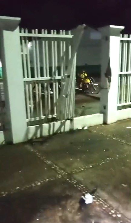 Moto da vítima parou no muro, enquanto corpo foi parar dentro da escola. Imagens: Reprodução