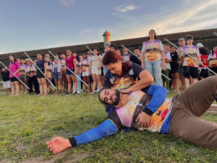 Macapá (AP) – O espetáculo “Uma Cruz Para Jesus”, maior encenação teatral a céu aberto do Amapá, realiza suas apresentações nos dias 2 e 3 de abril, às 20h, no Anfiteatro da Fortaleza de São José de Macapá, reunindo emoção, arte e tradição em mais uma edição marcante.